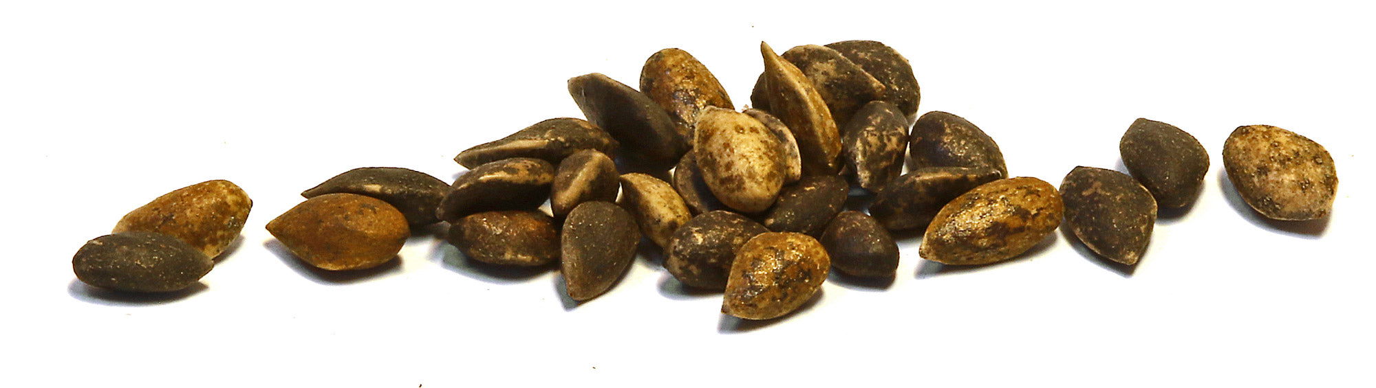 * Priežu sēklu izmērs ir ~2mm riekstiņš. Šajā attēlā tās ir attēlotas palielinātas. Vienā kilogramā ir aptuveni 150 000 sēklu.