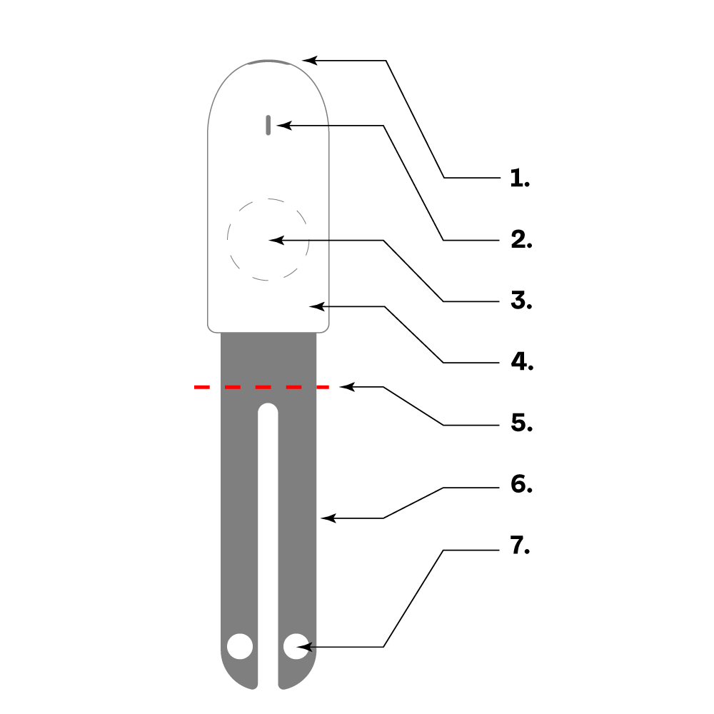 Nav vēlams zīļuku iespraust augsnē dziļāk par šo vietu, jo savādāk mitrums var nokļūt pie zīļuka elektronikas.