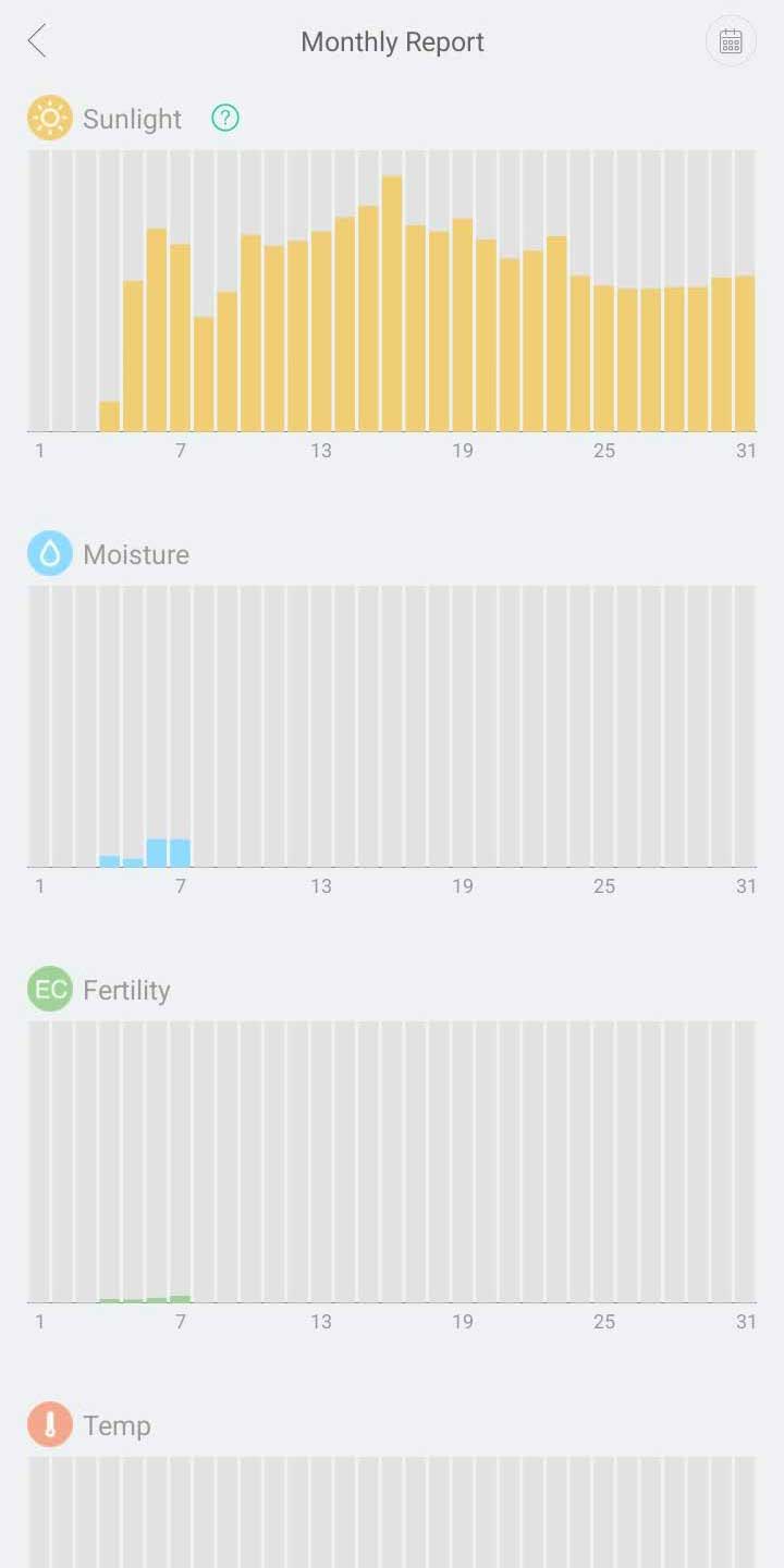 Ejot tālāk vari apskatīt kā augam ir gājis iepriekšējās dienās konkrētā datumā vai mēneša garumā.