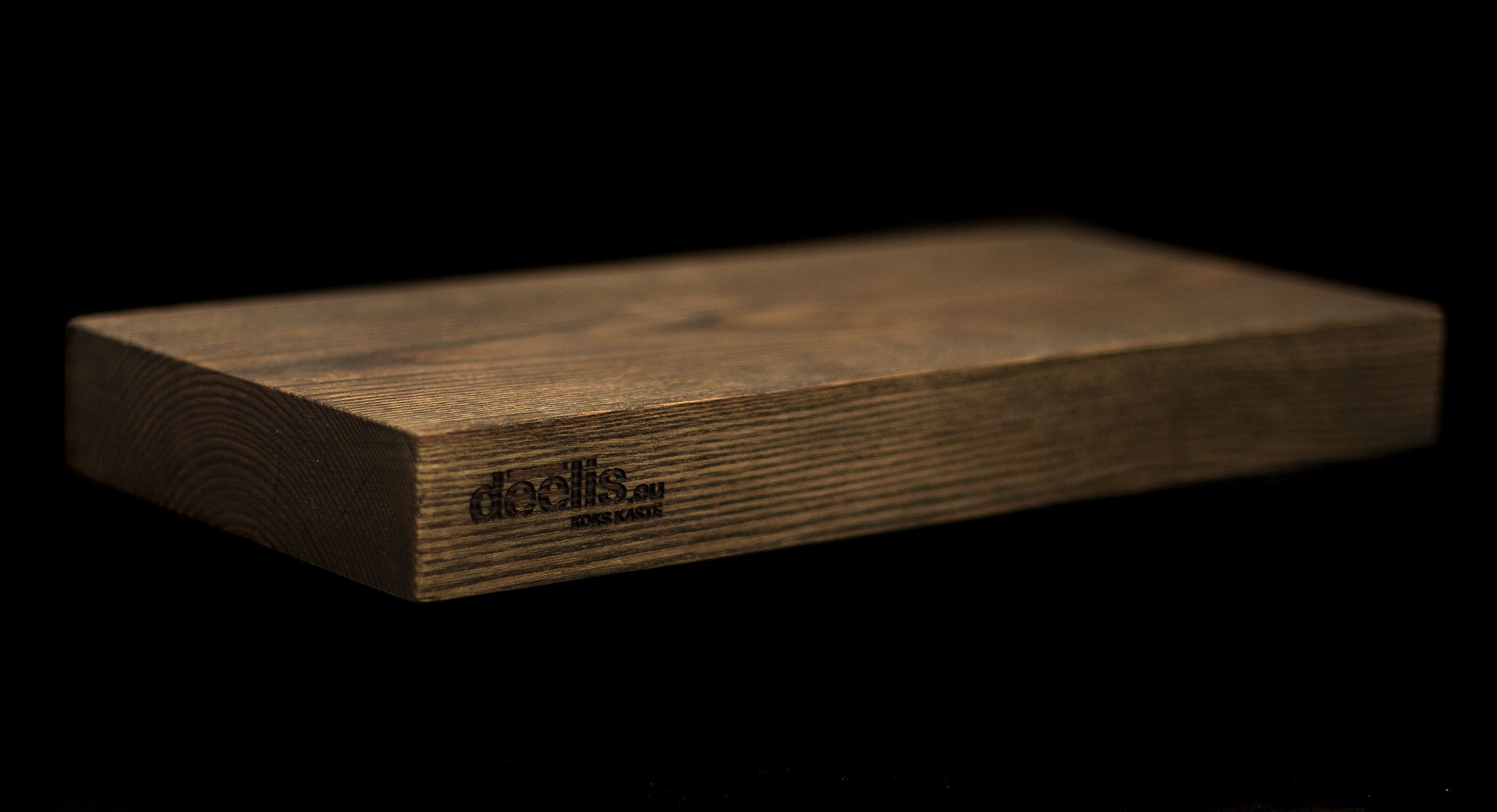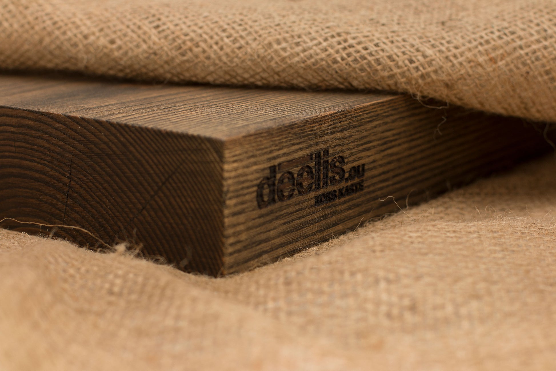 - Dēli iespējams apdedzināt, tad tiks iegūts dziļi melns ogļu tonis (šis izmantojams tikai servēšanai, jo uz tā griežot virskārta ātri nodils)