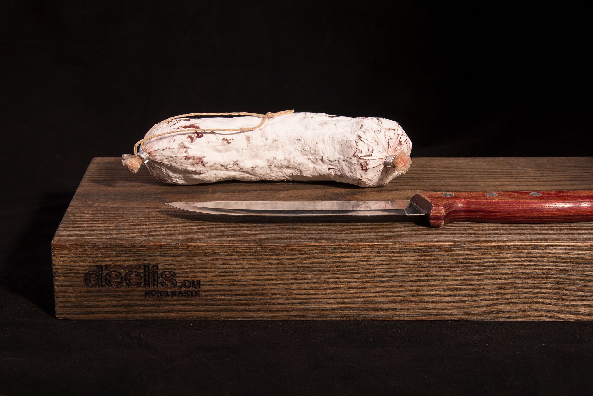 Dēlis izgatavots no 8 gadus žāvēta viengabala ozola koka. Šāds dēlis izturēs visus virtuves pārbaudījumus - gan nažus, gan āmurus, tas ir izturīgs pret mitrumu un mehānisko iedarbību. To var izmantot arī servēšanai, dēļ sava svara tas stabili noturēs vīna glāzi mīkstā dīvānā.