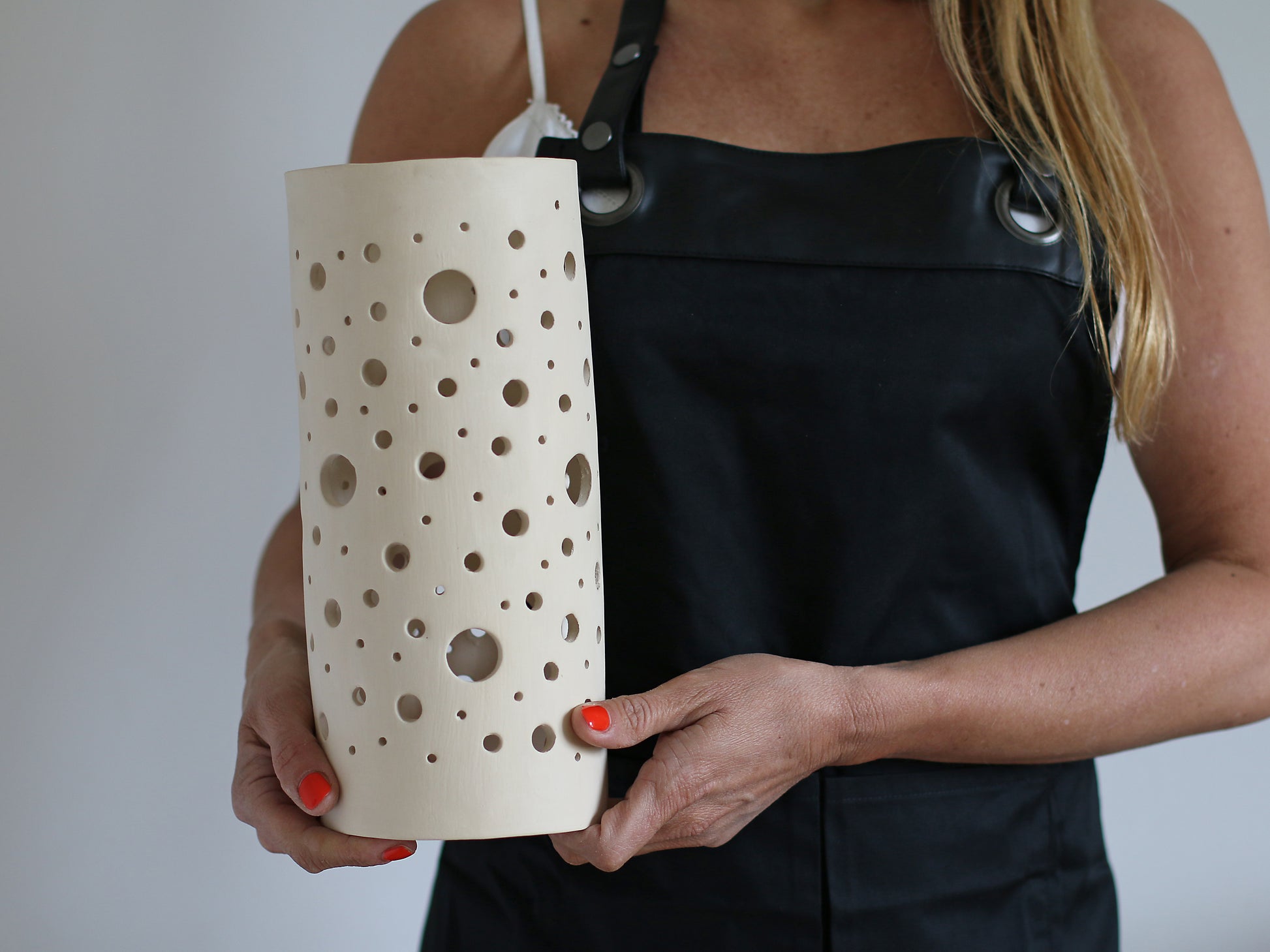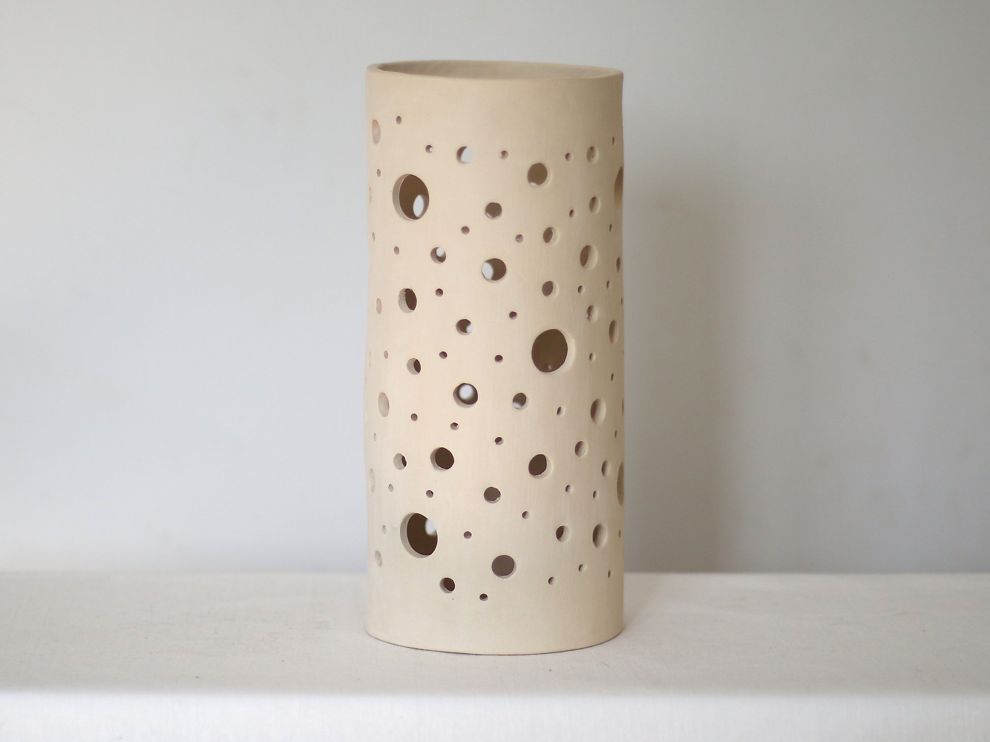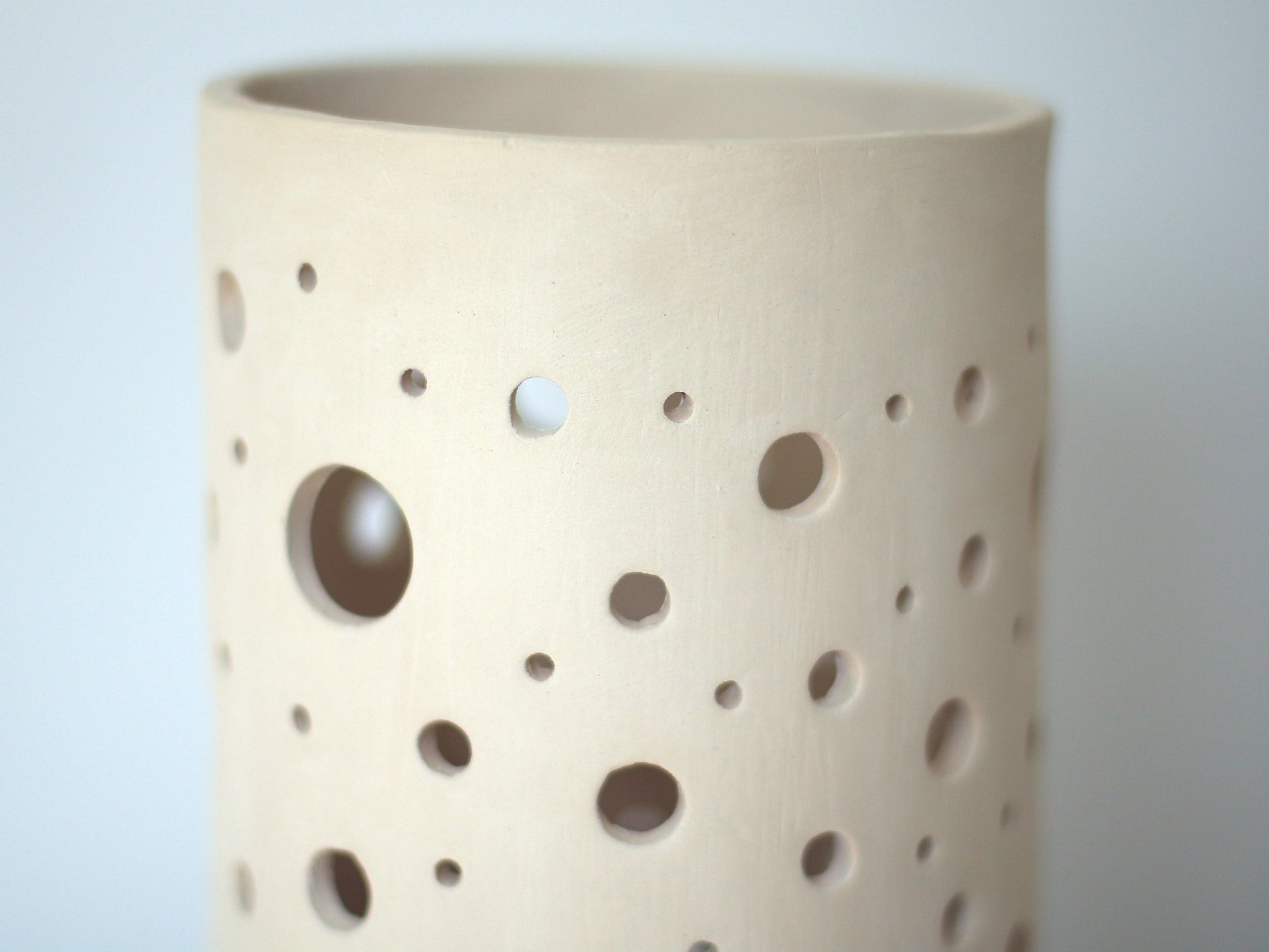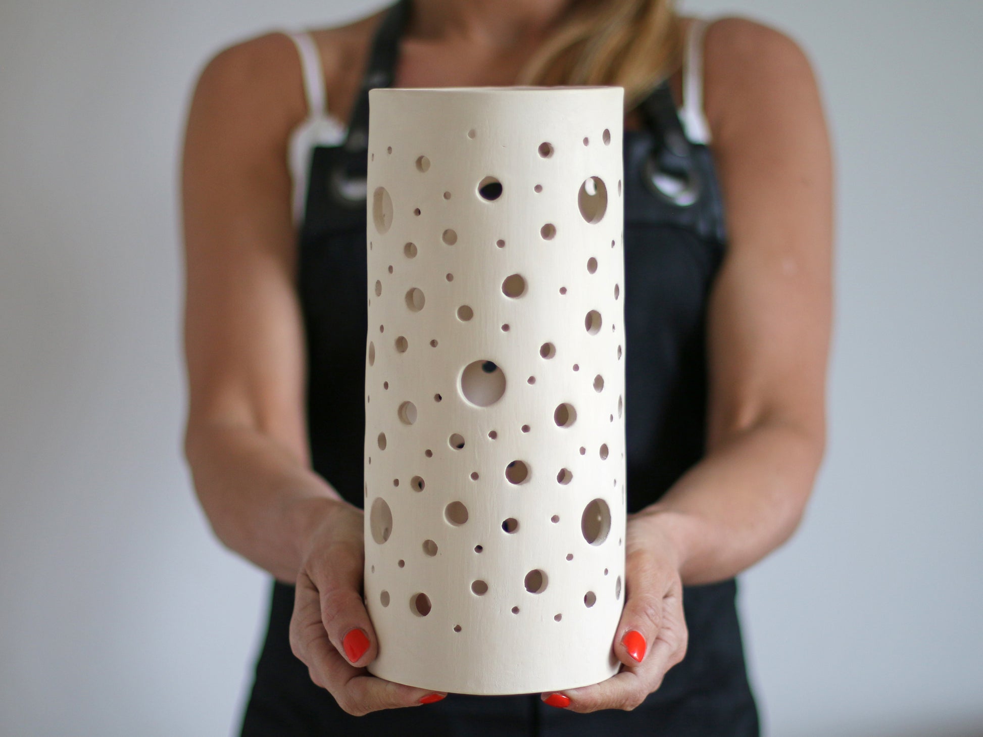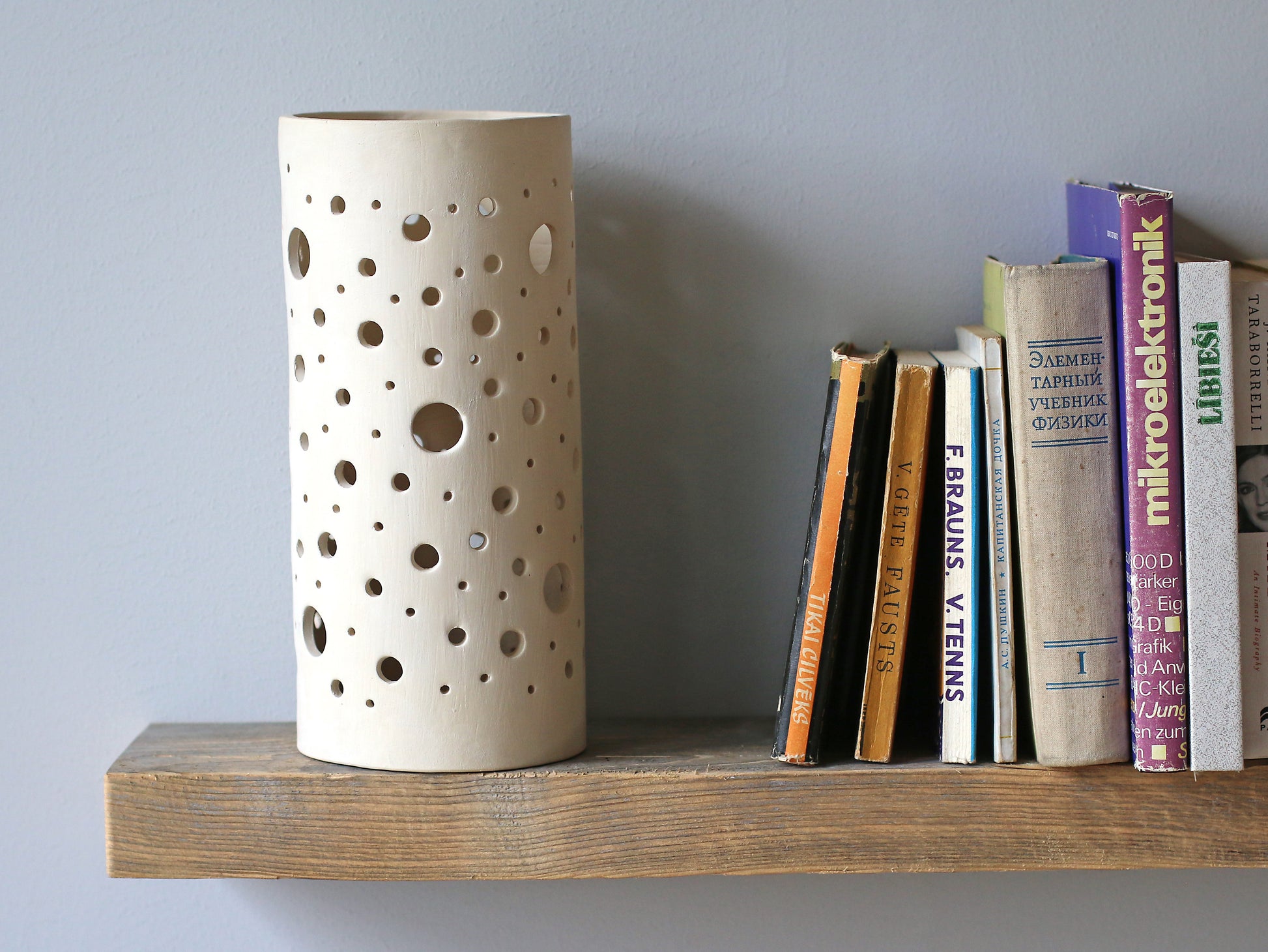 Šī baltā māla laterna būs dekoratīvs un funkcionāls papildinājums jūsu mājām.