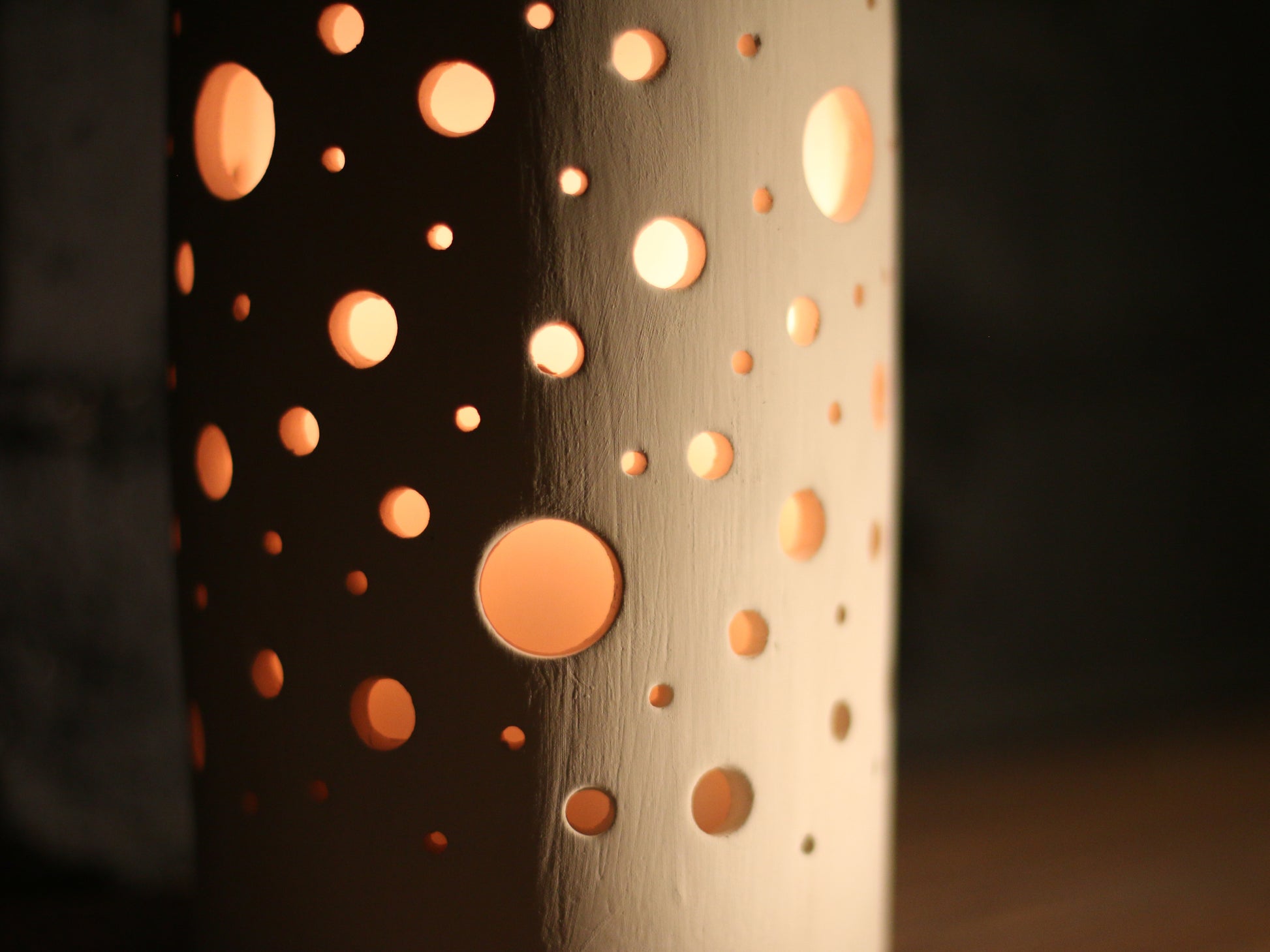 Mūsu laternas ir roku darbs - no baltā māla ar izgriezumiem gaismas stariem. Svečturi gandrīz 10 stundas tiek apdedzināti temperatūrā līdz 1050 °C un pēcāk piesūciņāti ar linsēklu eļļu.