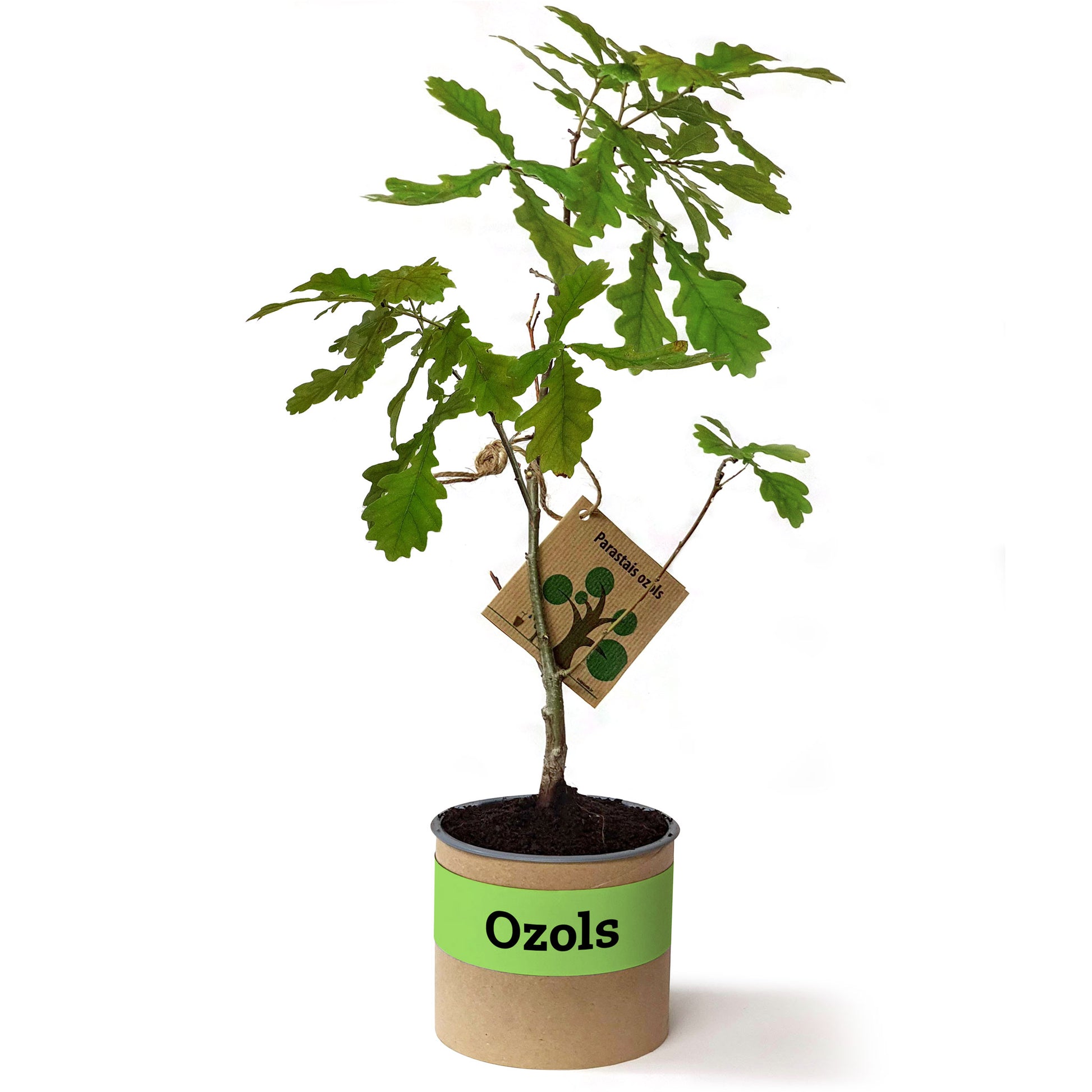 Divgadīgs ozoliņš vai liepiņa kartona podiņā.